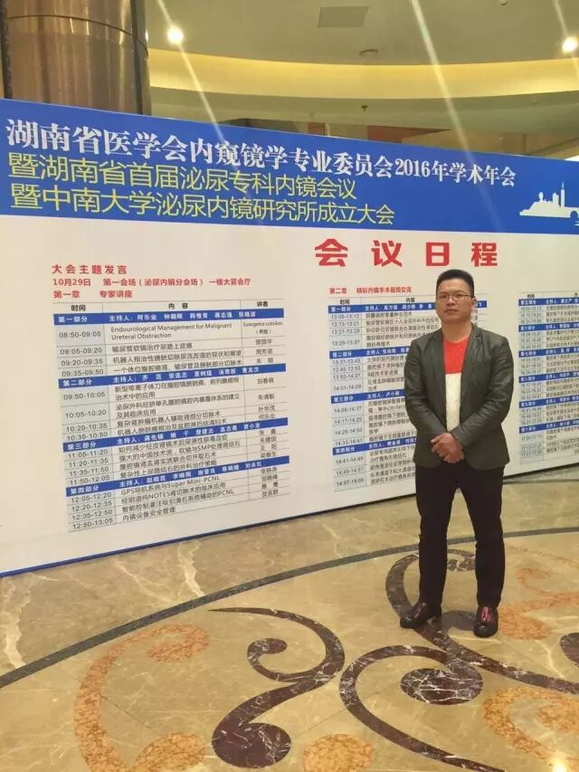 11月3—6日,湖南省医学会内窥镜学专业委员会2016年学术年会在省城长沙召开。此次会议吸引了近万名国内外泌尿外科专家学者参加,新晃县中医医院外二科主任向景平有幸受邀参会,并在泌尿外科主会场做《输尿管软镜在县级中医医院的应用体会》主题演讲,这次演讲充分体现了我院的微创泌尿外科水平得到了省内专家的认可,这不仅是我院的荣耀,也是新晃县医疗界的喜事。也充分体现了我院外二科团队勇于创新,敢于创新,乐于创新的大医精诚的精神。